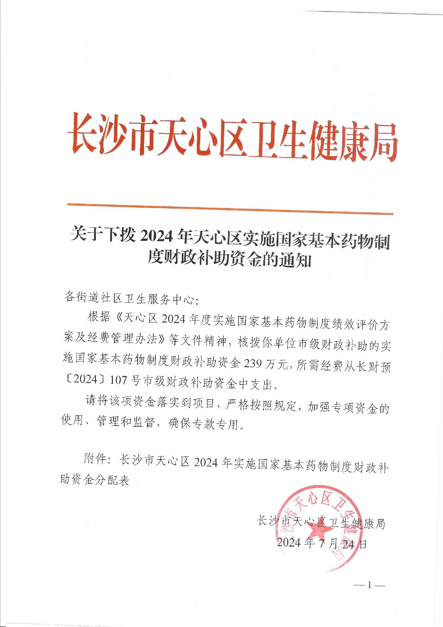 關(guān)于下?lián)?024年天心區(qū)實(shí)施國家基本藥物制度財(cái)政補(bǔ)助資金的通知(第二批)